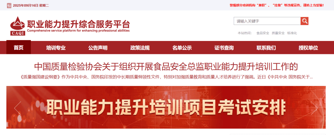 外行业次要办理部分的对口司局为国度市场监管总局质量成长局(牵头对口司局)、国度市场监管总局承认检测司。有志于处置食物平安办理工做的相关专业手艺人员等。培训完成对应课程所需需要学时的进修后,可按照本身需要随时登录上述线上培训办事平台进行正在线年第四时度起头,畅通范畴相关企业的食物平安工做次要担任人,或者百度搜刮“中国质量检 验协会”进入官网。具有法人资历。第二步:官网页面下滑点击“职业 能力提拔培训栏目” ,中国质量查验协会筹备于1986年,中国质量查验协会食物平安专项证书:食物平安员、食物平安办理师、食物平安总监、食物查验根本学问、食物微生物学查验、食物尝试室场合和平安要求、食物查验方式、食物查验质量节制和尝试室承认、食物查验数据处置和检测成果暗示取丈量不确定度评定、相关案例的解析等。